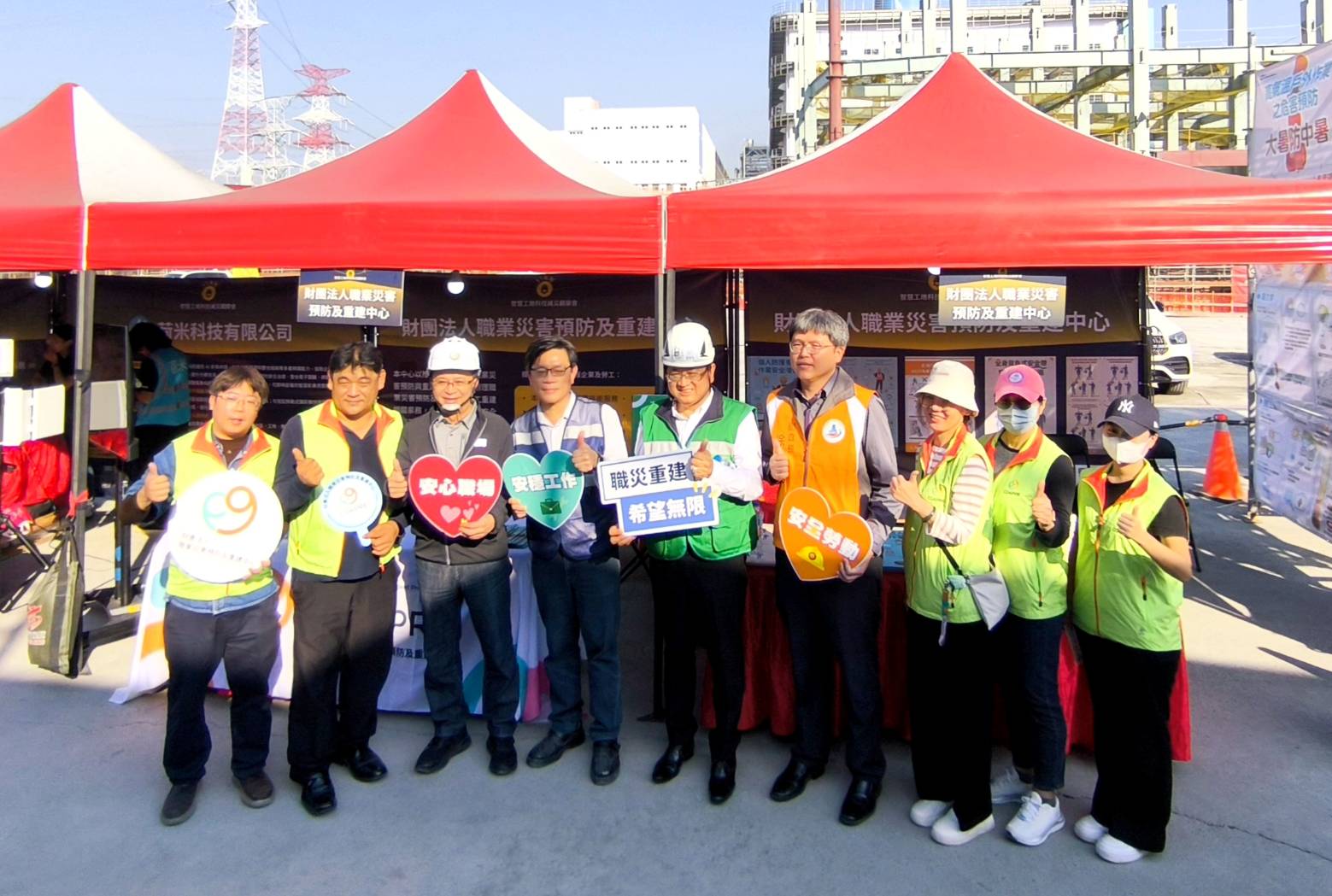 職災預防及重建中心范南鵬副處長、台電核能火力發電工程處南部施工處黃啟祥處長、高雄市勞動檢查處郭清吉處長、高雄市永安區公所黃瑞財區長、TOSHMS南區促進會吳政霖副會長、營造業南區職安衛生促進會徐正哲副會長、高雄市總工會黃明生副理事長、安全衛生技術中心張福慶技術經理、永清營造工程股份有限公司曾國進董事長與皆豪實業股份有限公司陳文進副總經理等人共同參與。