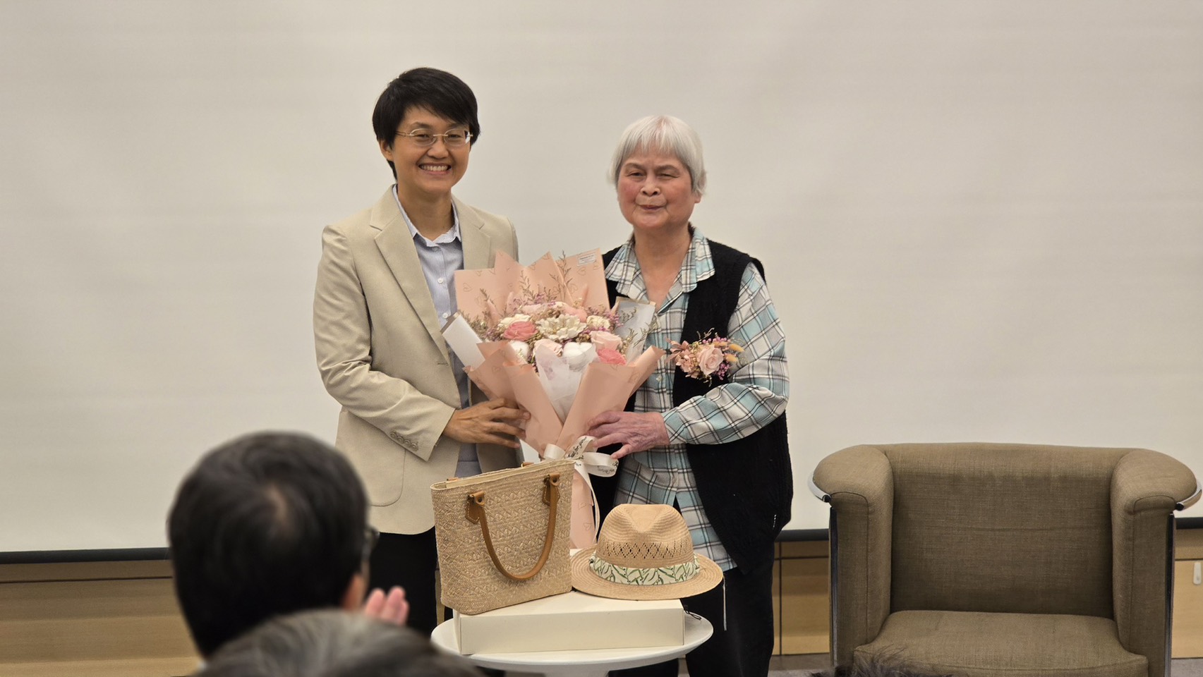 「客家終身貢獻獎-黃娟女士文學分享會暨客籍文學家文物捐贈特展」-客家委員會古秀妃主任委員溫馨獻禮予黃娟女士