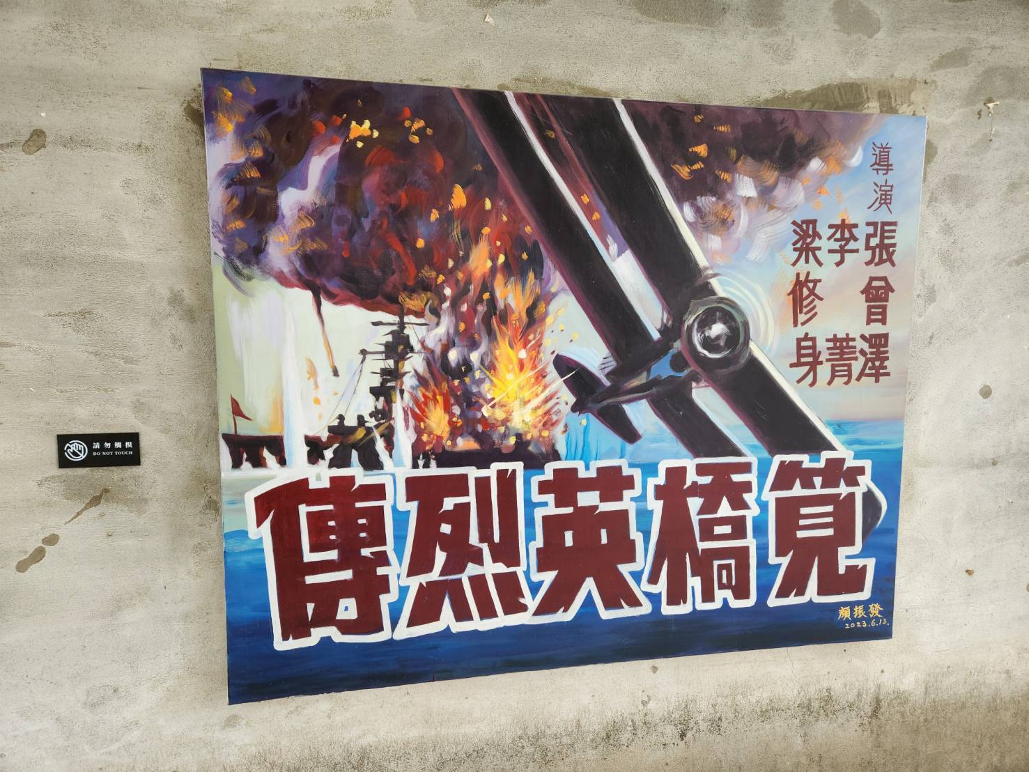 國寶級電影手繪看板師顏振發彩繪的《筧橋英烈傳》圖樣,放置於水交社文化園區。