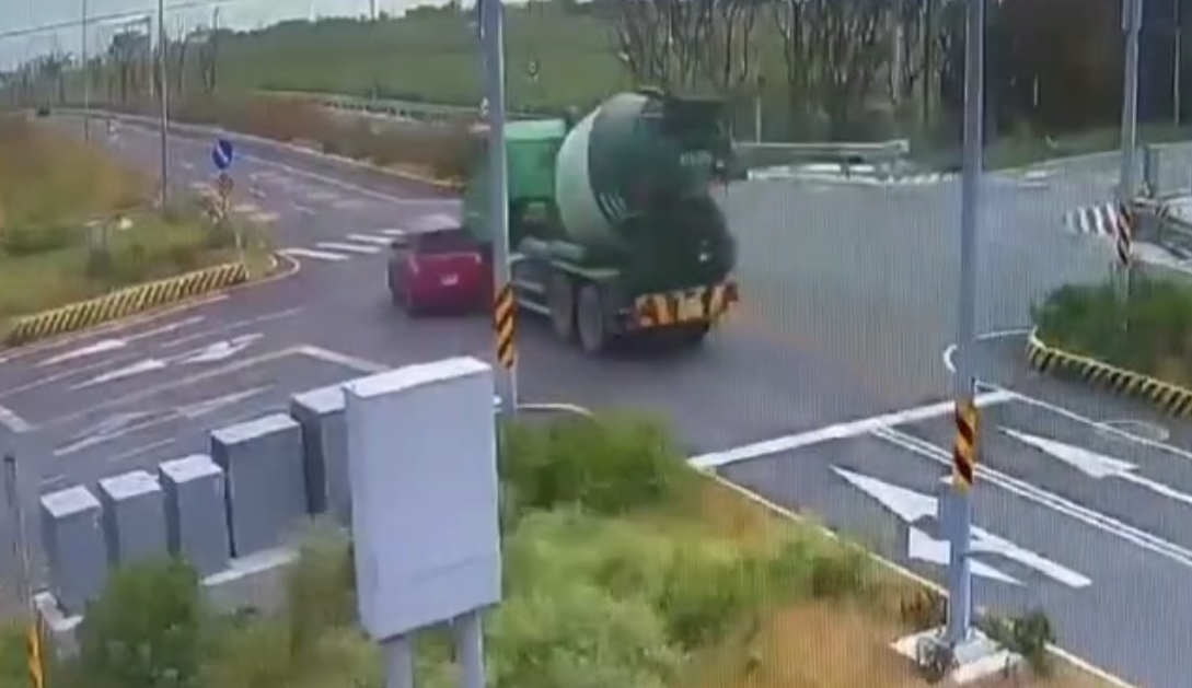 彰化縣二林鎮預拌混凝土車與自小客車在路擦撞。翻攝畫面