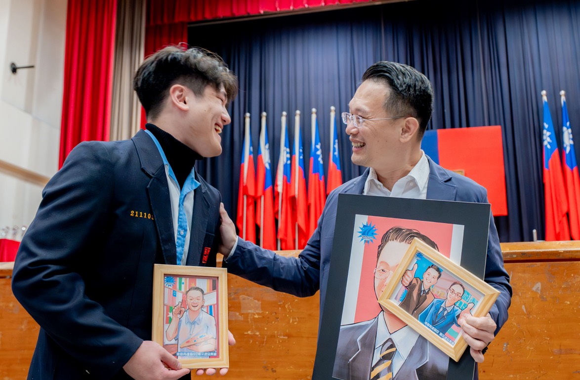 在技職教育成果方面,蘇俊賓特別肯定育達高中亮眼的表現。110學年度育達獲教育部「高職優質化績優學校」肯定,是全國兩百多所技術型高中中唯一獲獎的私立學校,也是桃園市唯一獲此殊榮的學校。另在109年及111年國中技藝教育訪視中,育達連續獲得「優等」評價,特別在餐飲、美術、平面設計及漫畫等領域表現突出。學生在「平面設計類」及「漫畫類」競賽中屢屢奪獎,相關獲獎紀錄已連續25年為桃園之冠,堪稱難以超越的里程碑,充分展現其專業培育能量與卓越教學品質。今日活動中,育達學生也特別製作電繪人像畫致贈蘇俊賓。蘇俊賓也分享,育達學生過去創作的畫作至今仍收藏於其辦公室,對學生創意與學校教育成果的高度肯定。