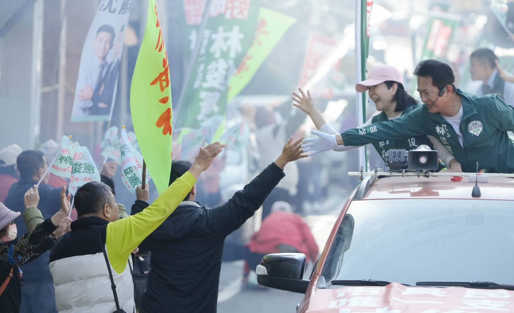 台南市曾經當過最年輕的里長、藍天驛站董事長郭儒宗利用民進黨初選造勢活動最後一天與海安商圈理事長黃舜屏及八家旅宿業者、營阿腳朝興宮溫陵廟執事一同相挺民進黨市長參選人林俊憲,站在府前路上迎接林俊憲的掃街車隊,預祝他能順利通過黨內初選民調。