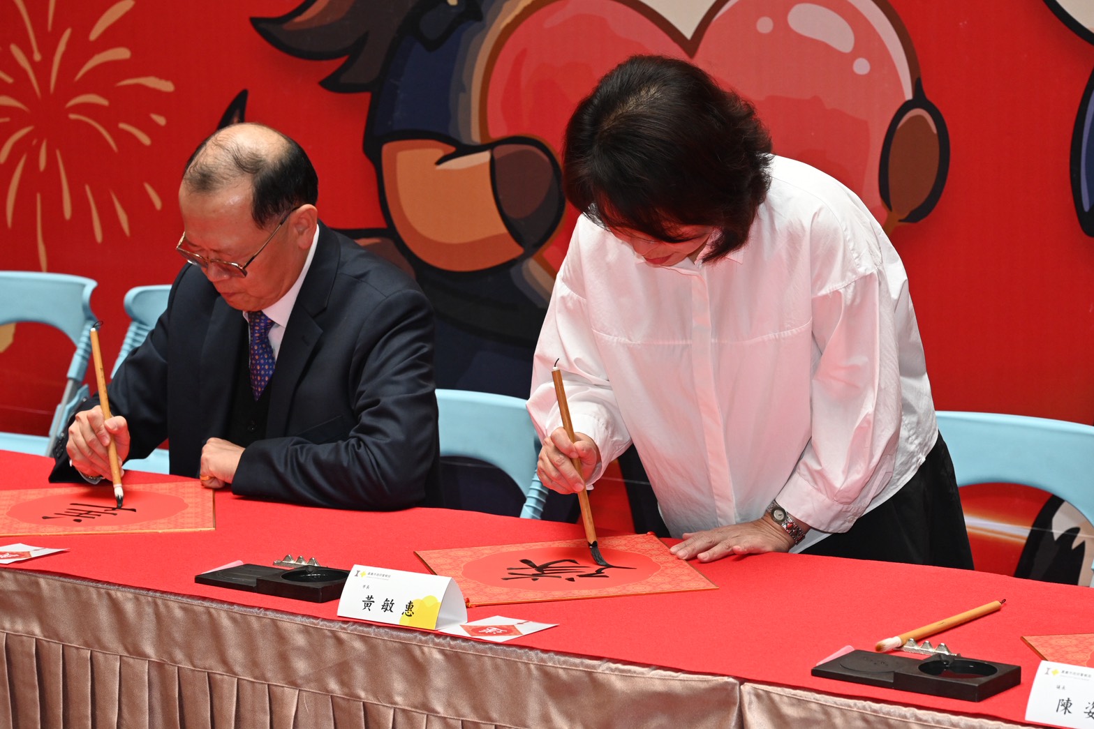 嘉義市長黃敏惠現場揮毫。翻攝畫面