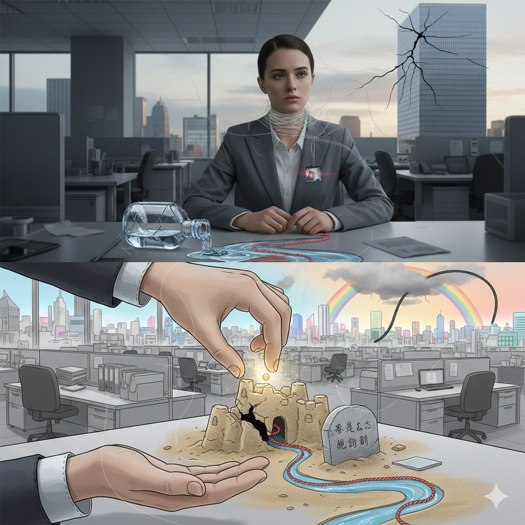 這樣的場景,在職場中並不陌生。當你一次次被分配到不成比例的工作量,或在團隊中默默承擔他人推諉的責任,那個浮現的念頭——「算了,不想惹事」——就如同那根纖維,看似微不足道,卻早已成為結構裂解的起點。