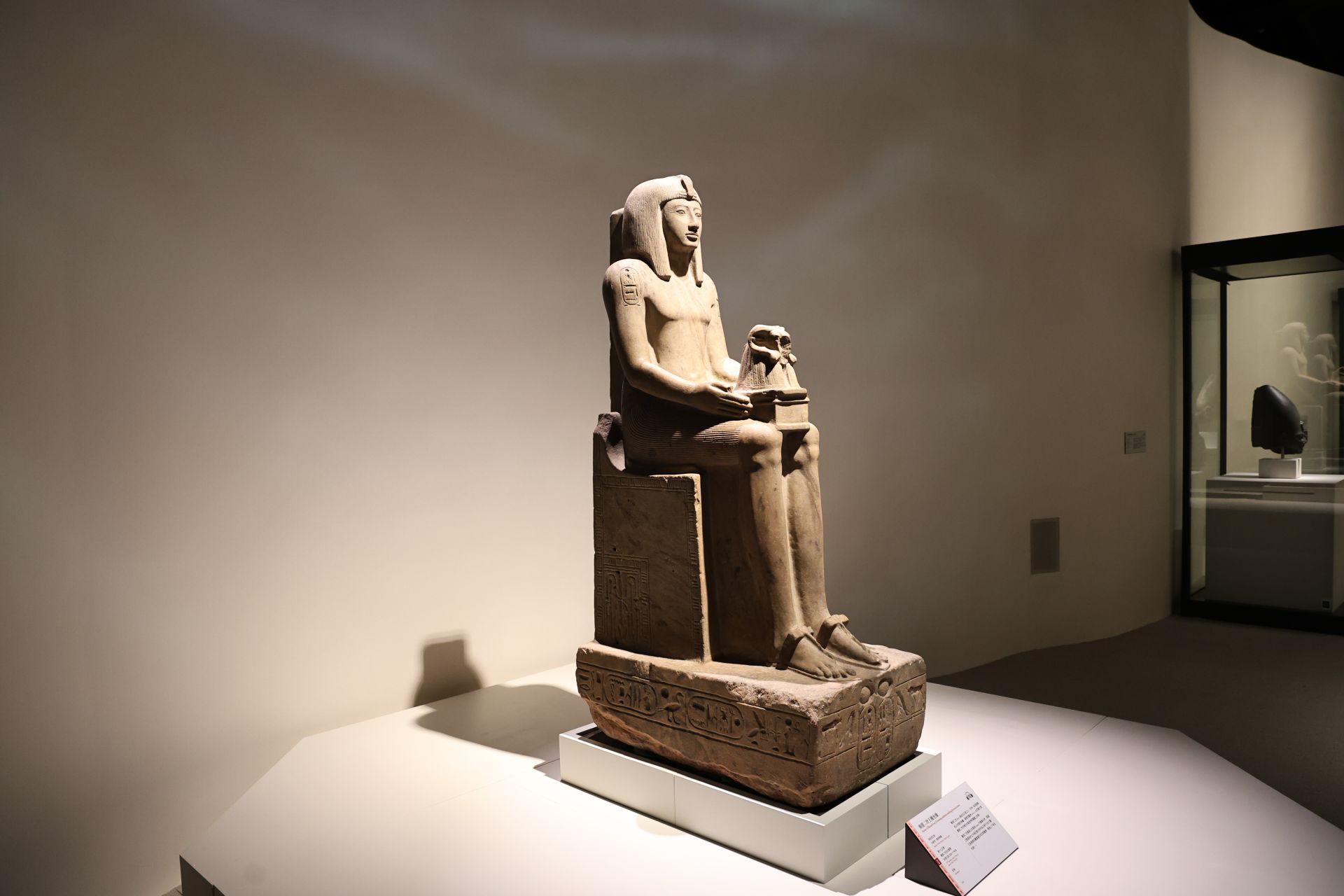 隨後,展間轉為碧綠色調,進入單元四「王室」。綠色象徵重生與繁榮,觀眾可近距離凝視王室成員面容,並一窺宮殿壁磚裝飾。單元五「統治埃及」與單元六「埃及與世界」延續河流意象,但改以曲折動線羅列文物,隱喻政權衝突與磨合,展現法老如何在軍事對峙與外交運籌中,將古埃及推向古代世界貿易網絡核心。