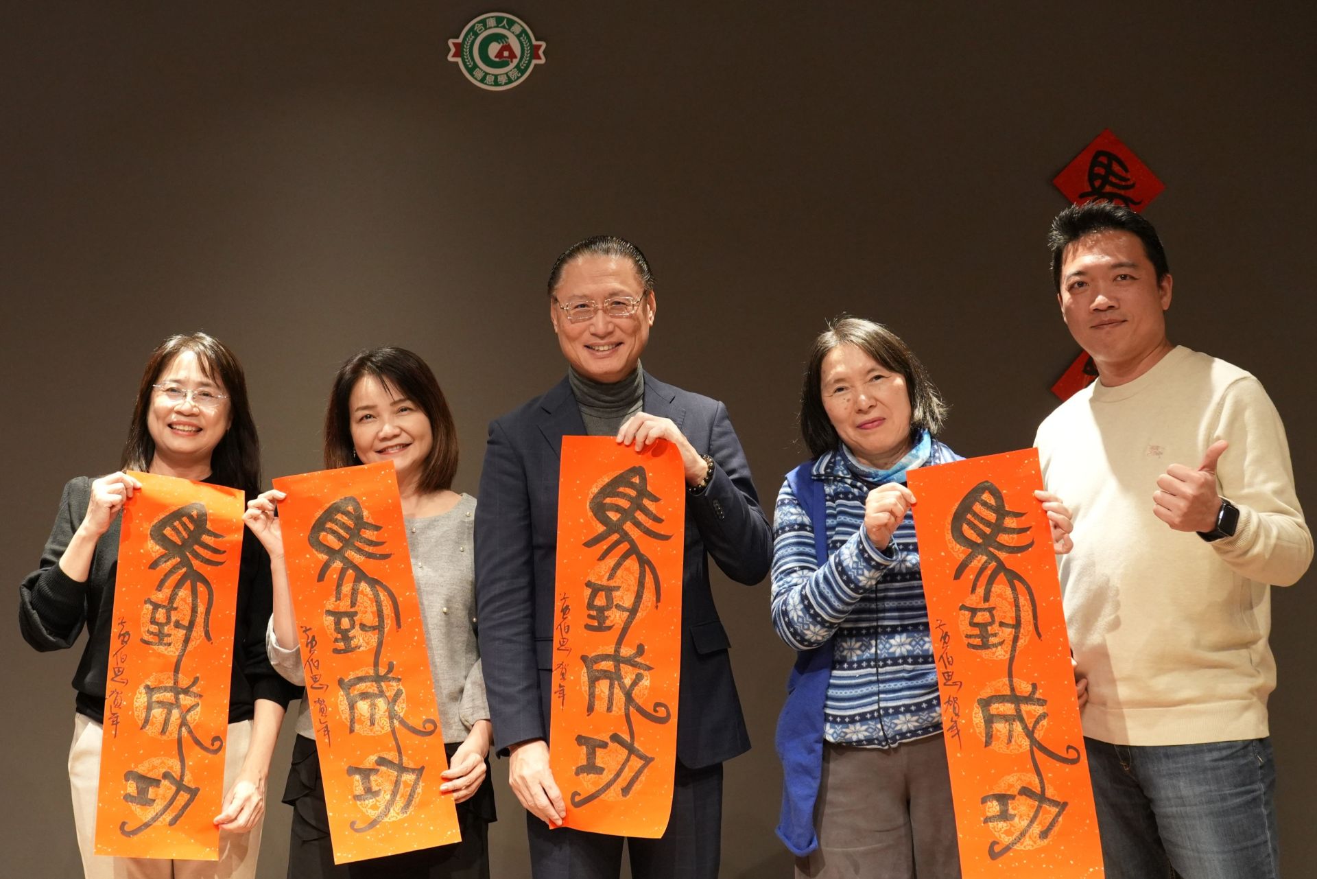 在參與者的笑容中,也體現了三方跨域合作相輔相成的效果:家總深耕照顧者支持、合庫人壽提供企業資源,臺文館則注入文學的撫慰力量。活動邀請長期投入生命故事書寫的鄭美里老師,引導照顧者在繁忙的照顧循環中「停步」,在共讀《陪伴彼此,走得更遠》中練習「照顧自己」;下半場則由中華民國書法教育學會副理事長黃伯思現場指導,不同於傳統春聯多為祝賀他人,現場照顧者紛紛提筆寫下「給自己的春聯」,將筆墨轉化為對自我的肯定。