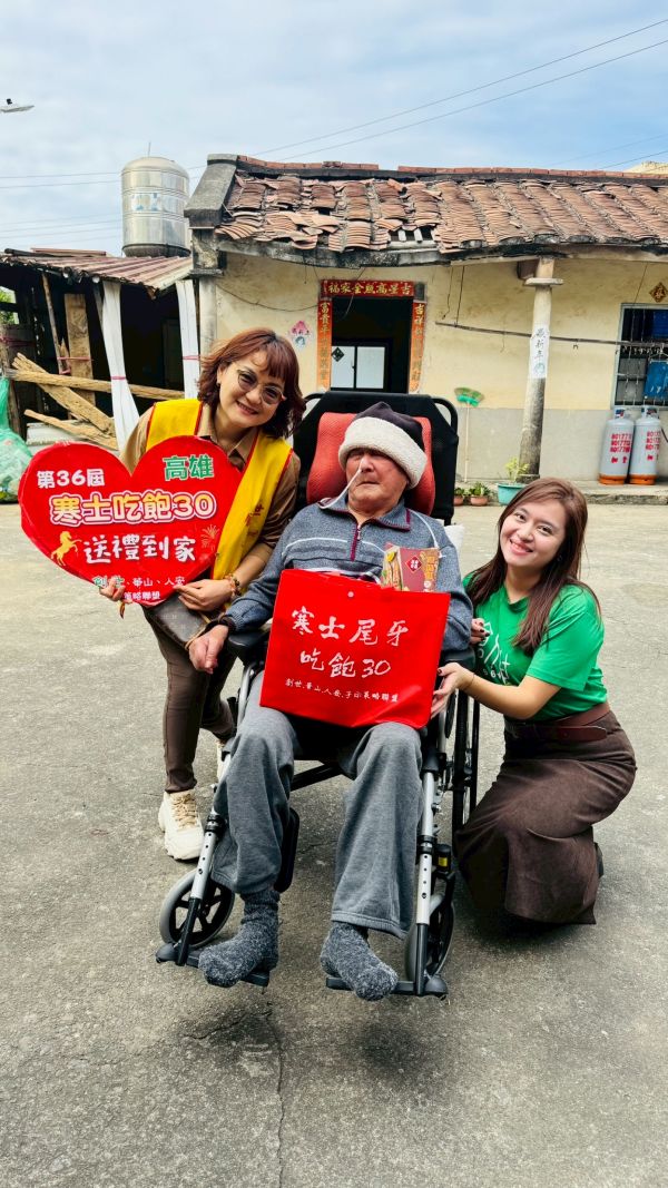 【視傳媒記者吉雄世高雄報導】即將迎接長達9天的農曆春節,人人準備溫馨團聚,但對老弱孤苦的清寒植物人家庭、寒士、街友、單親媽媽及獨居長輩,春節卻更顯漫長艱苦;創世、華山、人安策略聯盟關懷殘、老、窮,辦理第36屆「寒士吃飽30」送禮到家活動,高雄分會於2月2日集結善心馬力全開、送愛到家。連續多年參與的愛心貴賓高雄郵局尤素珍局長、過期空姐KIKO、高雄市慈幼慈善會…等多位貴賓,齊心將年禮及紅包親送給植物人家屬,並貼上吉祥喜氣的春聯,傳遞社會真摯的關懷與祝福。