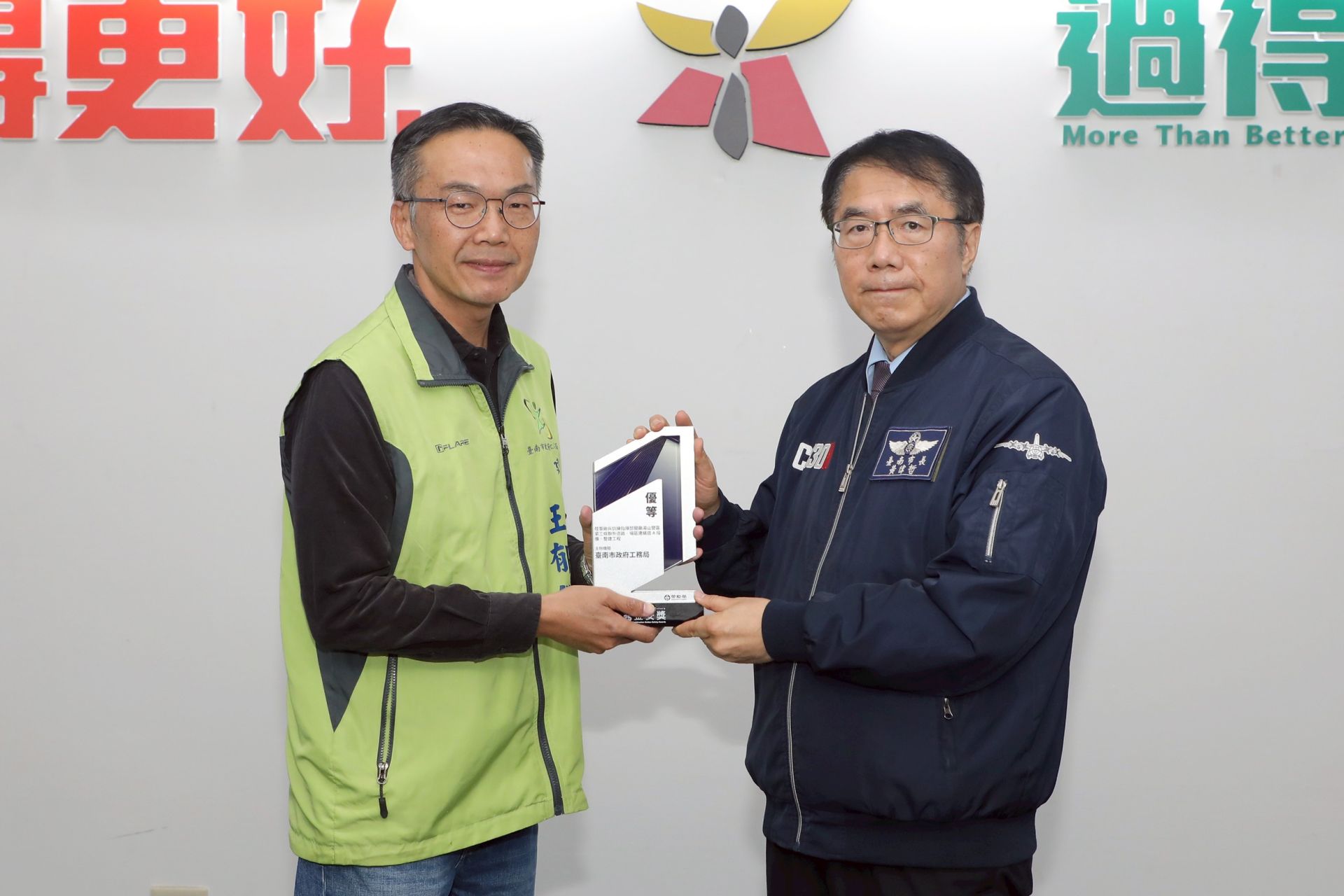 ▲工務局長陳世仁榮獲勞動部金安獎人員類甲等,市長黃偉哲給予高度肯定。(新聞處 提供)