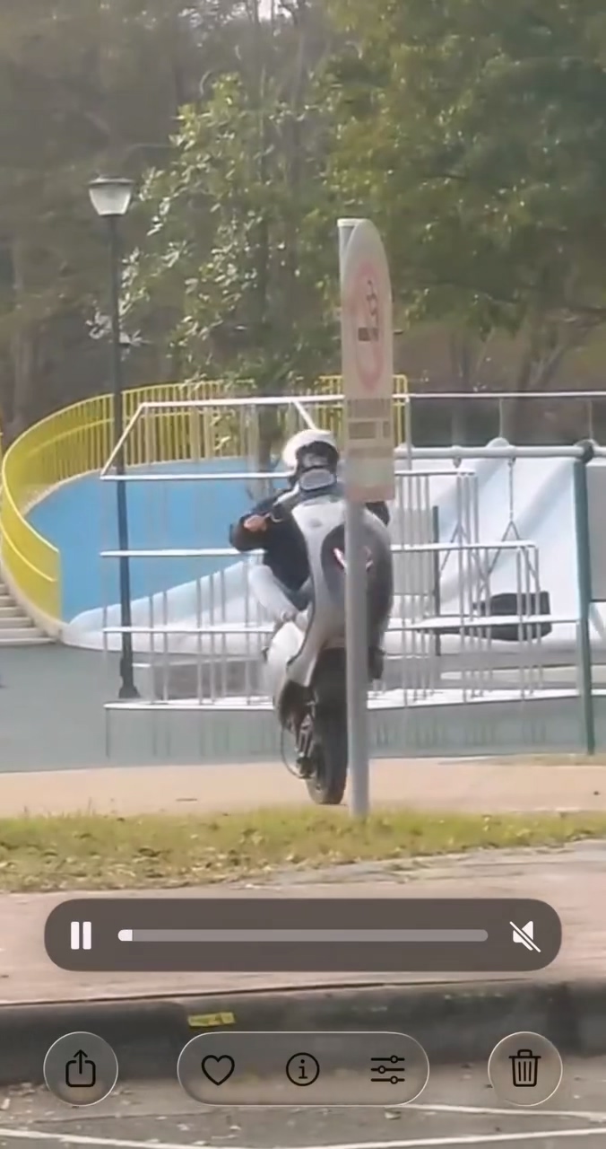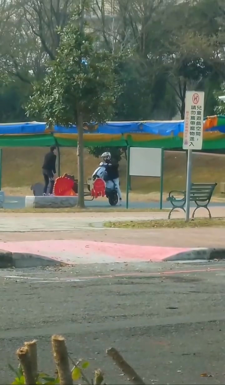 有騎士騎電動機車闖進公園翹孤輪,還用電動機車玩蹺蹺板,市公所要查了。