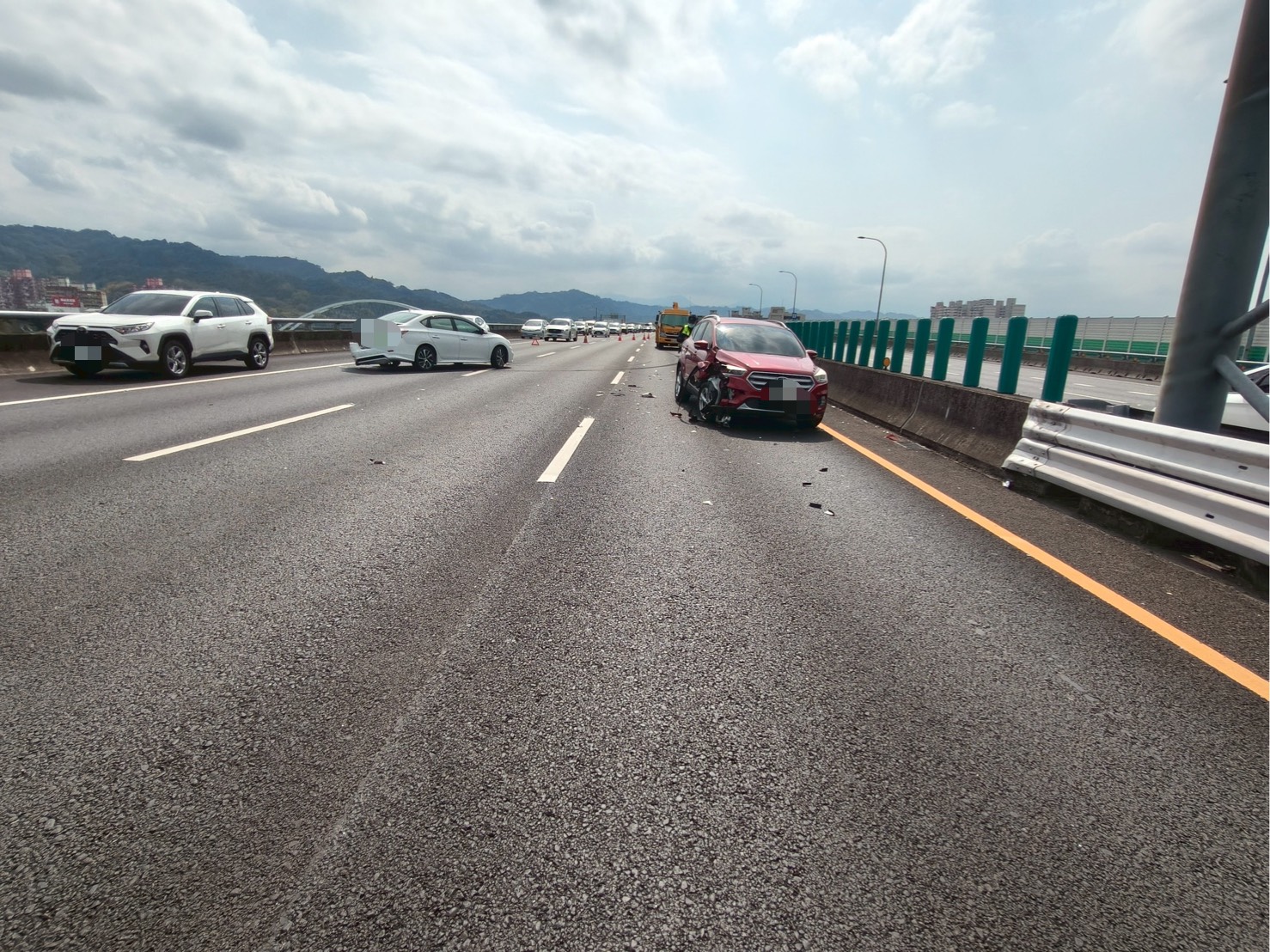 國道警察第七大隊呼籲用路人:春節期間車流量大,開車應保持安全距離、注意車前狀況,切勿分心或疲勞駕駛,如有身體不適或精神不濟之狀況,請進入服務區或離開高速公路休息或儘速就醫,以維自身及他人行車安全。
