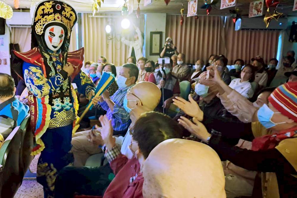 ▲關懷八德榮家長者日常,何歡劇團舉辦「翻轉生命力」巡迴義演活動,節目中特別安排互動橋段,邀請八德榮家長者上台與何歡劇團表演者共同完成演出,現場笑聲與掌聲不斷。(圖/八德榮家提供)