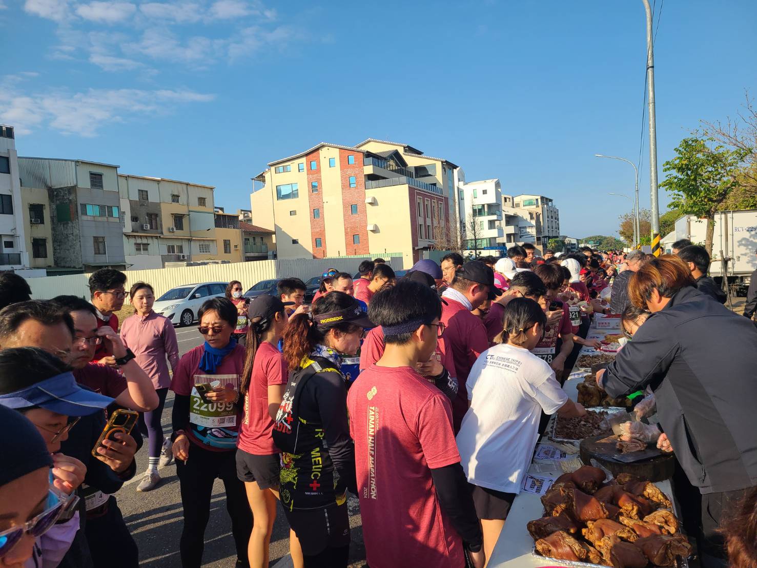 ▲主辦單位特別於賽道上規劃美食百年宴,除了烤雞、豬腳、蜂蜜滷味及現打果汁,亦有度小月、麵粉酥等在地特色小吃。